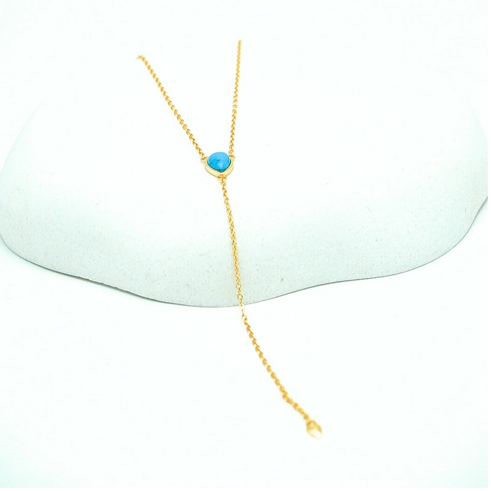 Experimente la elegancia sin esfuerzo con nuestro collar Lariat chapado en oro que presenta una impresionante pieza central de color turquesa y un delicado colgante de corazón. Elaborado con plata de ley bañada en oro, este collar estilo lazo añade un toque de sofisticación y belleza atemporal.