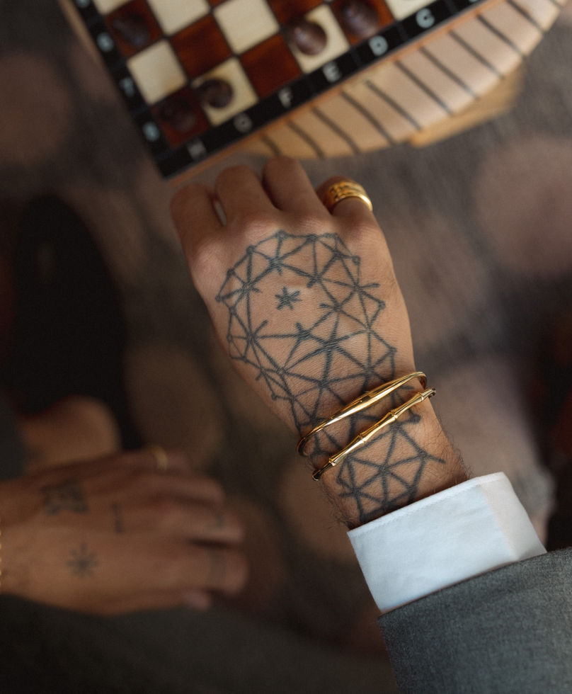 This gold-plated bracelet with a bamboo motif is an elegant piece of jewelry that combines nature-inspired design with a touch of luxury. Bamboo elements symbolize strength and tranquility.
