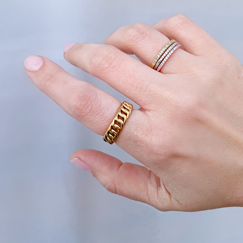 This trendy and bold Cuban chain-style ring is made from gold-plated steel. Not only is this ring fashionable, but it is also water resistant, making it the perfect accessory for everyday wear.